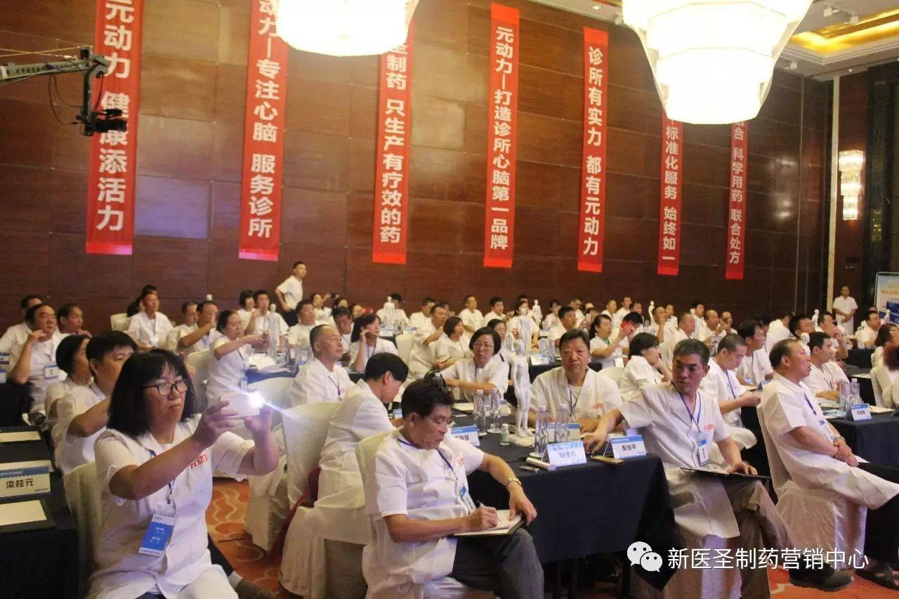何总在致词中强调:新医圣制药,只生产有疗效的药!始终专注心脑,服务诊所,坚持以帮助诊所建立心脑标准化诊疗室为己任,致力于把元动力打造成第三终端诊所渠道!